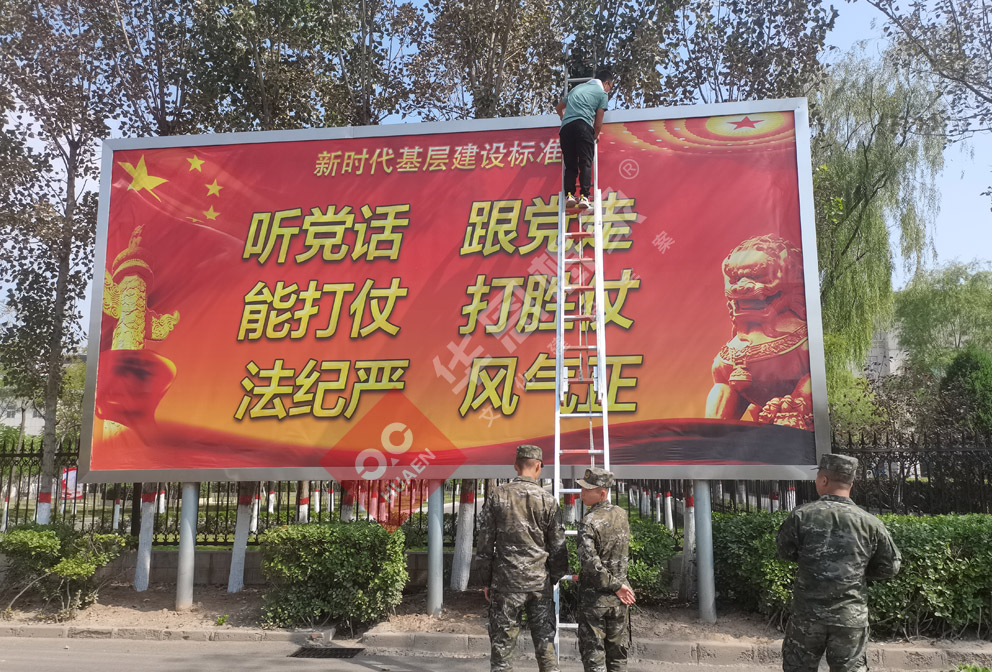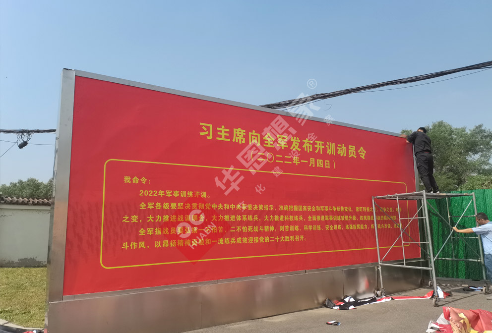 項(xiàng)目?jī)?nèi)容:部隊(duì)宣傳欄、部隊(duì)指示牌、部隊(duì)道旗、部隊(duì)大型廣告牌、部隊(duì)標(biāo)語(yǔ)墻等等設(shè)計(jì)落地