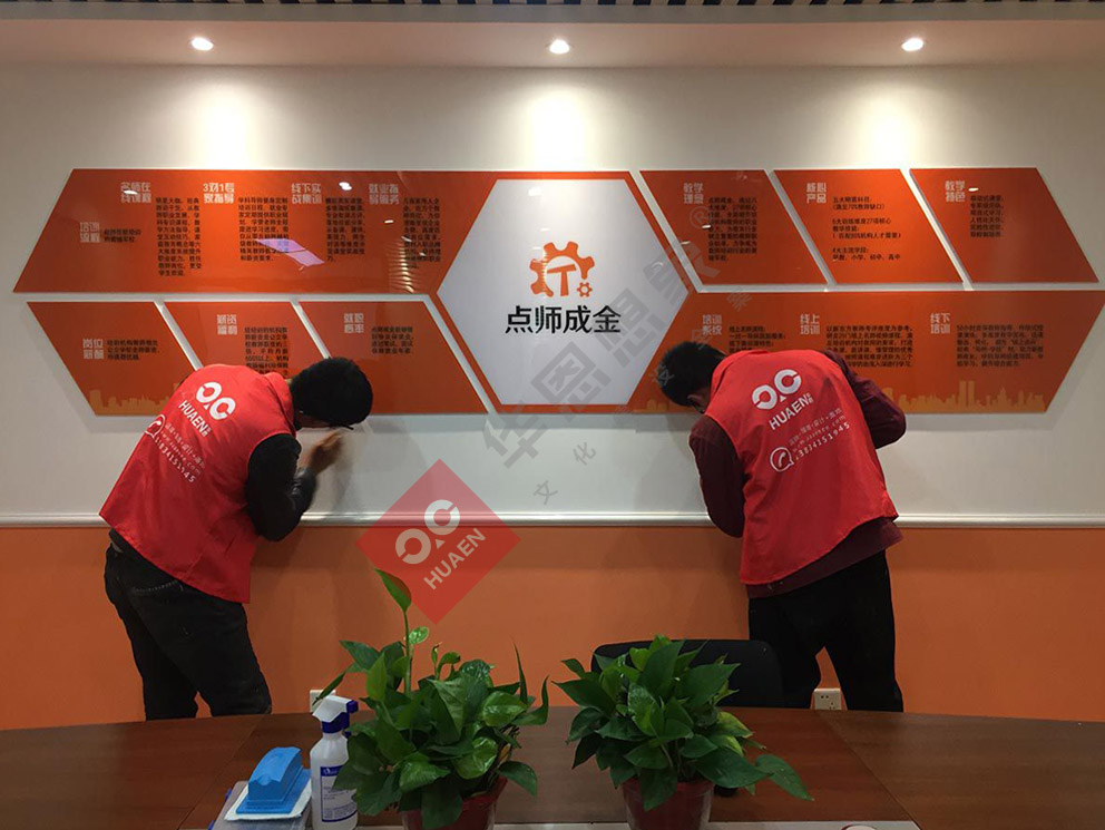 1. 效果驗收:企業(yè)與服務(wù)團隊共同驗收,核對文化墻的尺寸、色彩、內(nèi)容、工藝是否與設(shè)計方案一致,檢查安裝牢固性、表面平整度等細(xì)節(jié);